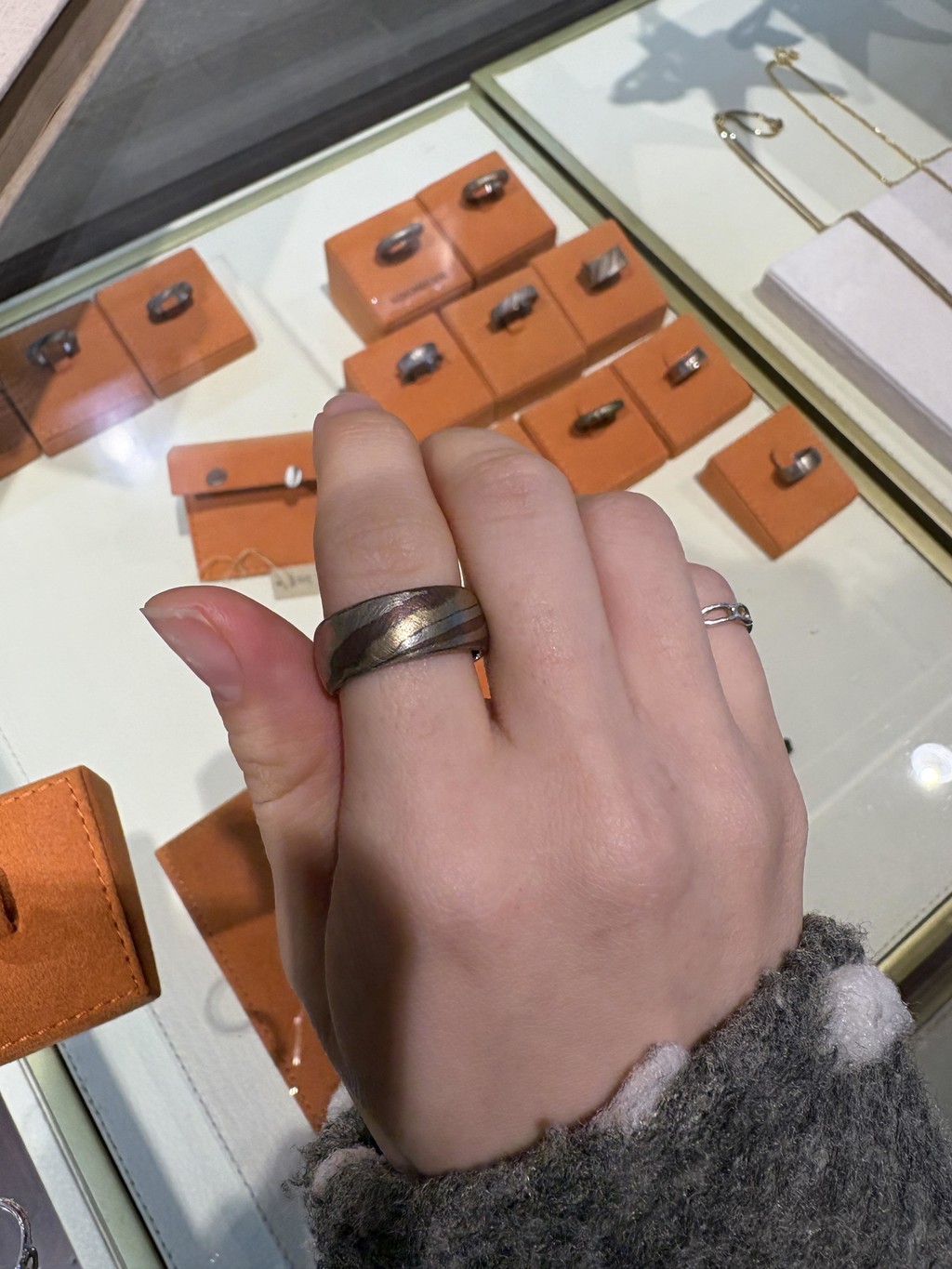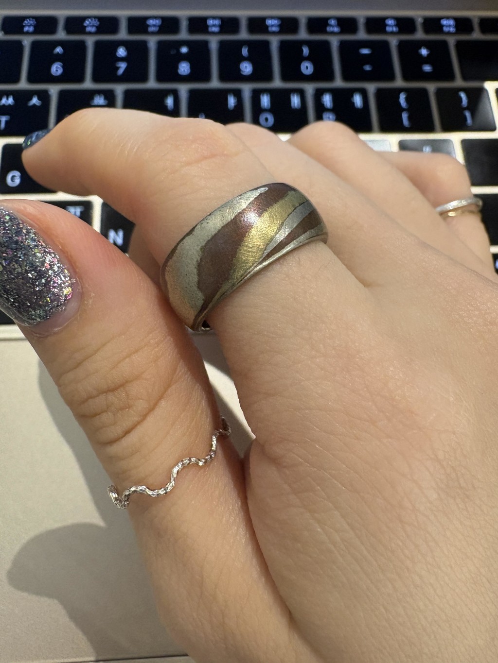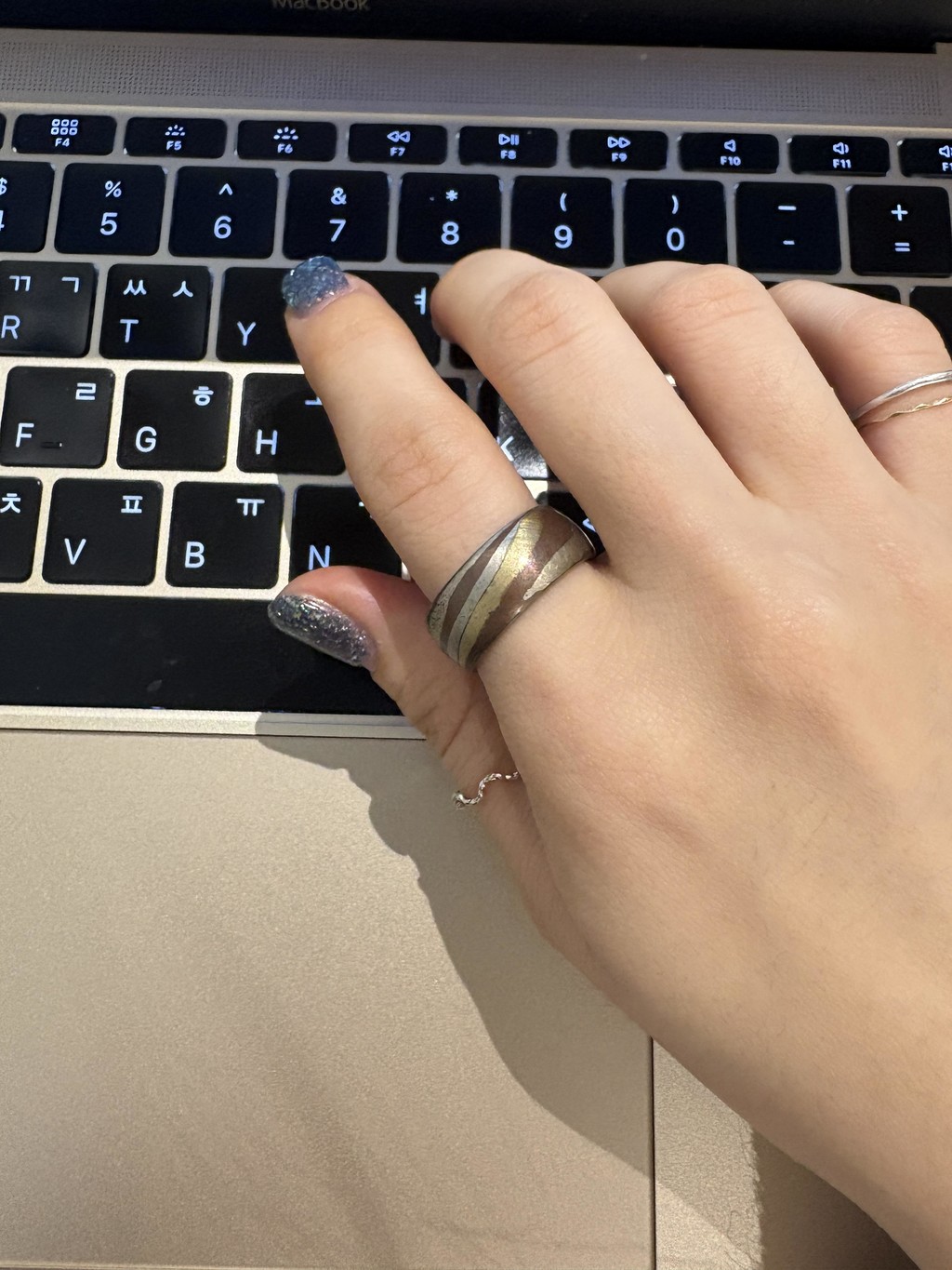모쿠메가네 기법으로 만들어진 반지입니다.