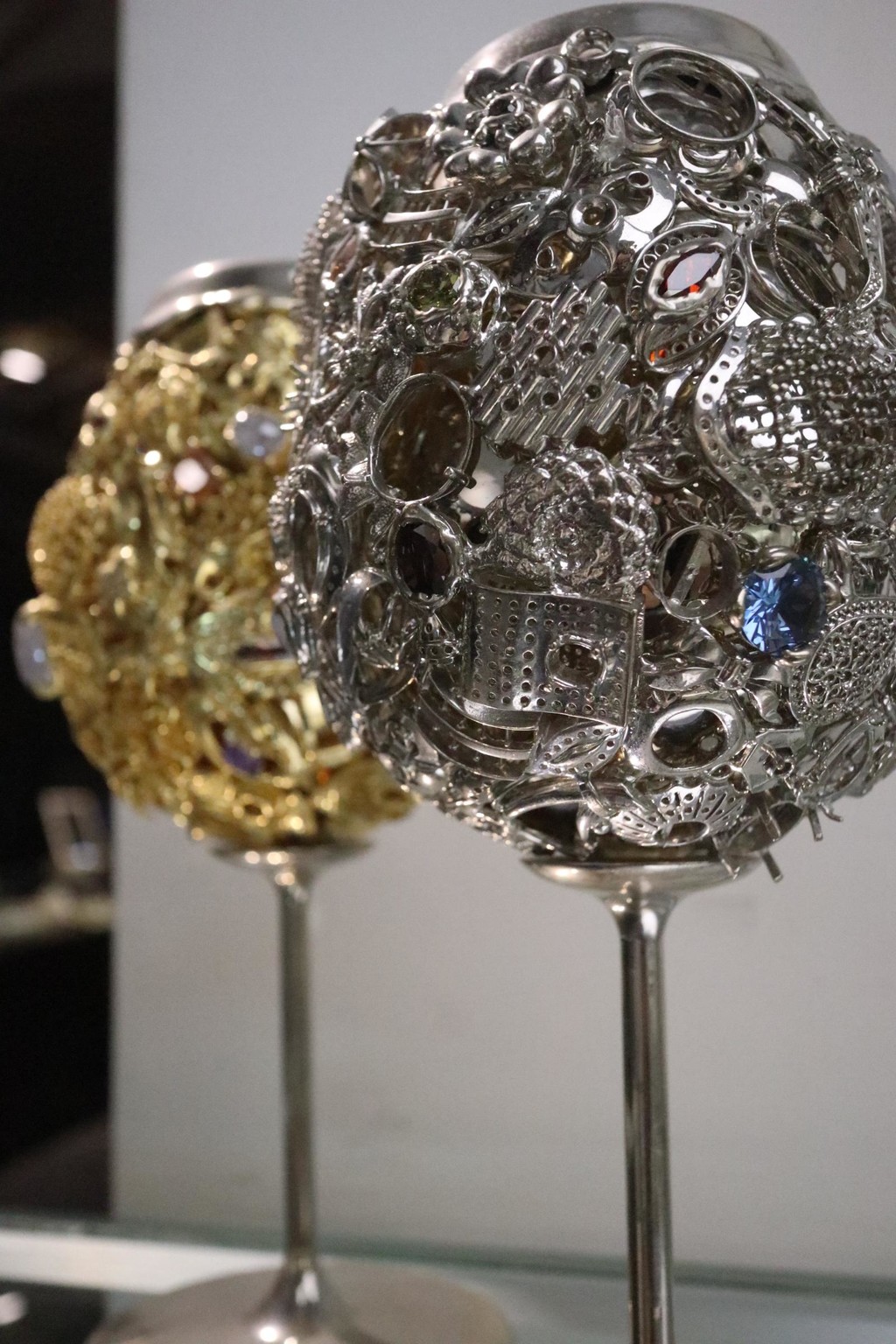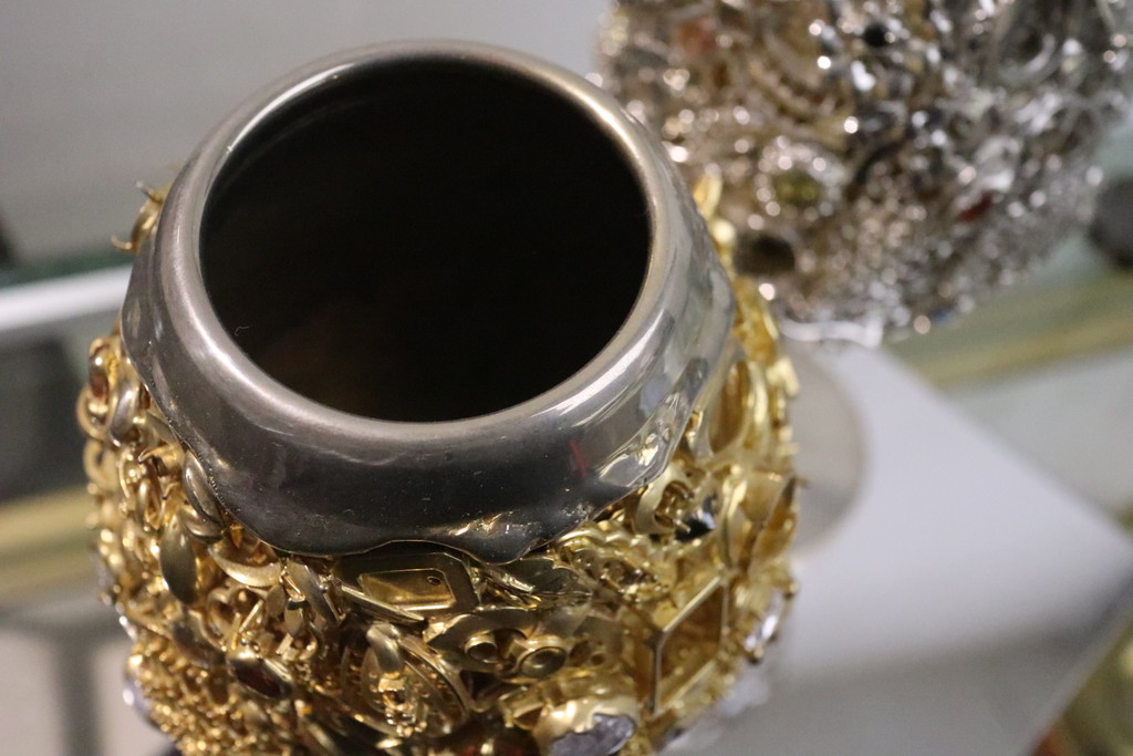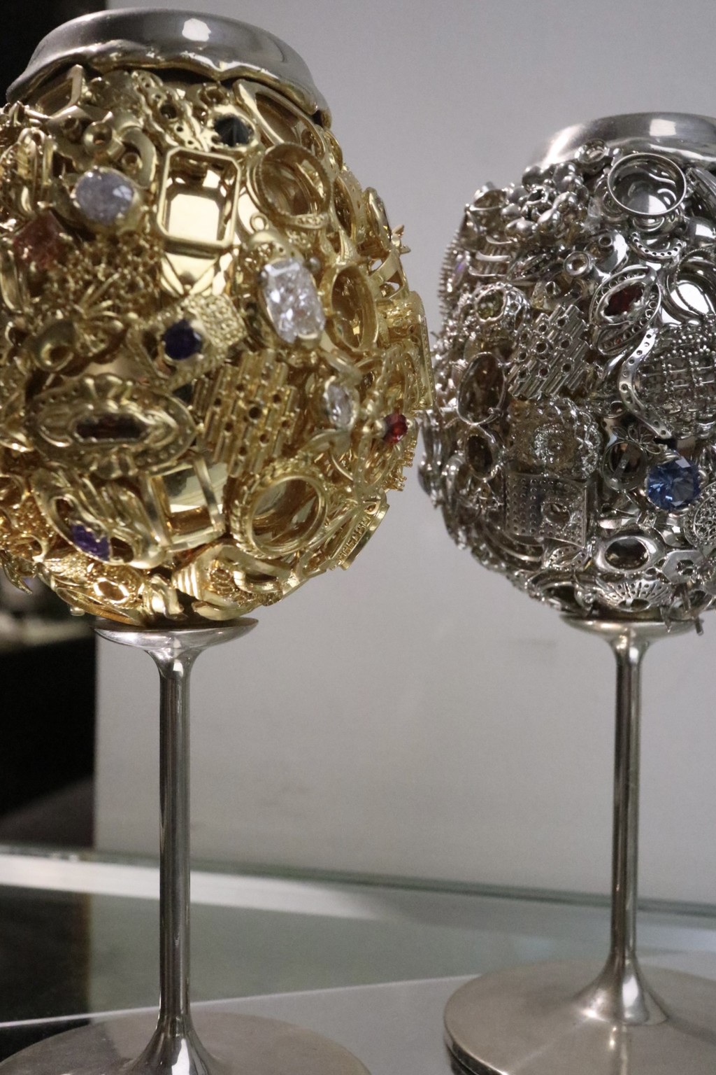 와인 글라스로, 재질은 동에 금, 은 도금입니다.