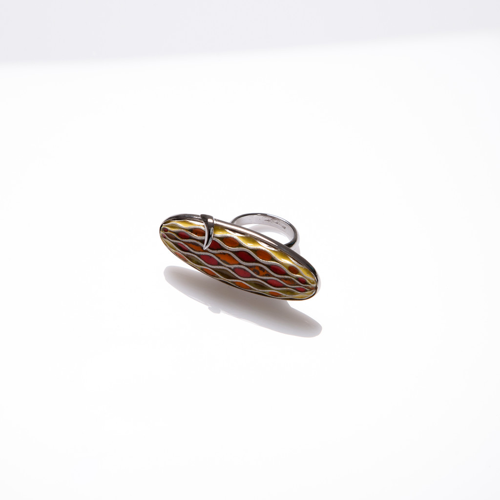 순은 위에 세가지 색상의 칠보를 얹어 가마에서 앞뒤로 구워 완성한 반지입니다.
