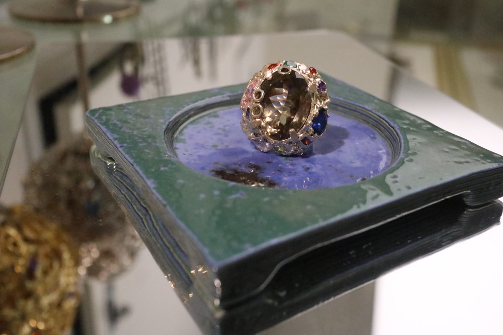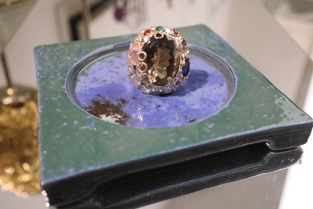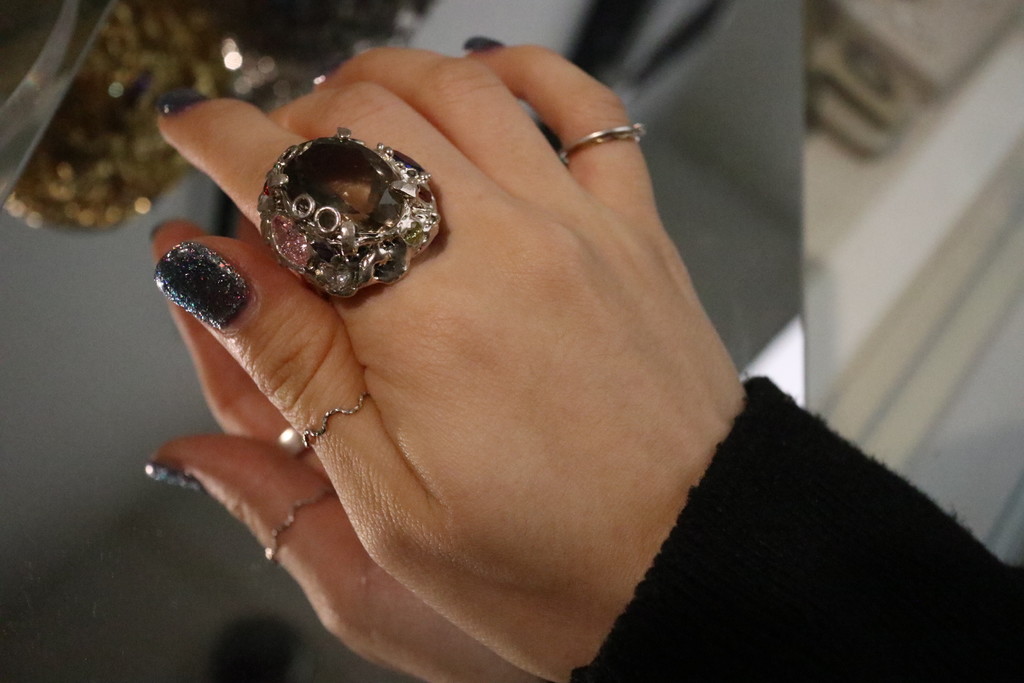옅은 갈색빛, 혹은 회색빛이 도는 연갈색의 색을 가지고 있는 연수정은 영어로 스모키 쿼츠(smoky quartz)라고 해요. 연하다는 뜻의 연이 아니라 연기같다는 의미의 연수정입니다! 굉장히 차분한 빛을 가진 수정인데 저희 메탈페인팅 라인에서는 과감한 색상의 큐빅을 아낌없이 사용함으로써 아주 개성적인 반지로 탈바꿈시켰어요. 연수정의 오묘한 톤이 오히려 더욱 살아나는 느낌이죠.