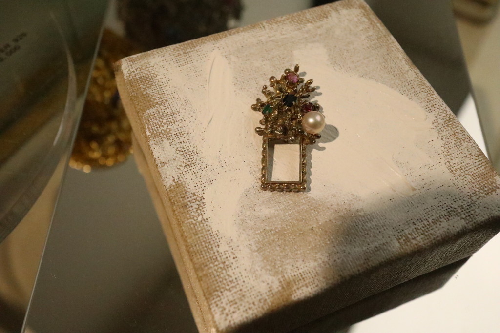 산호를 모티브로 마치 액자와 같은 틀 위에 얹은 형태의 브로치입니다.
