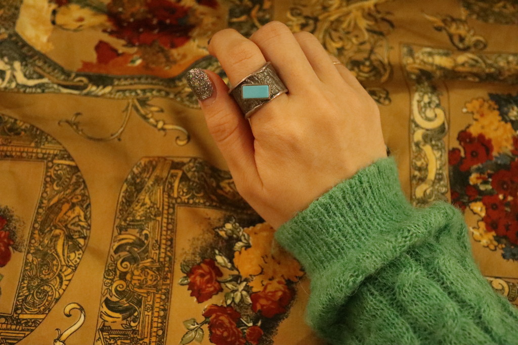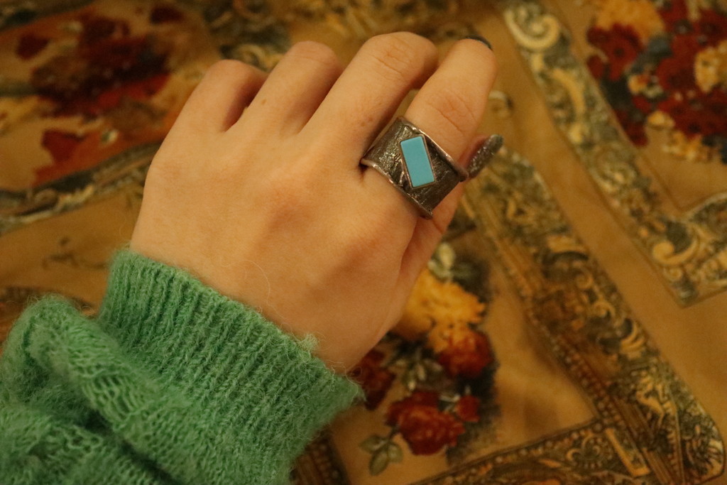 square turquoise hammer ring